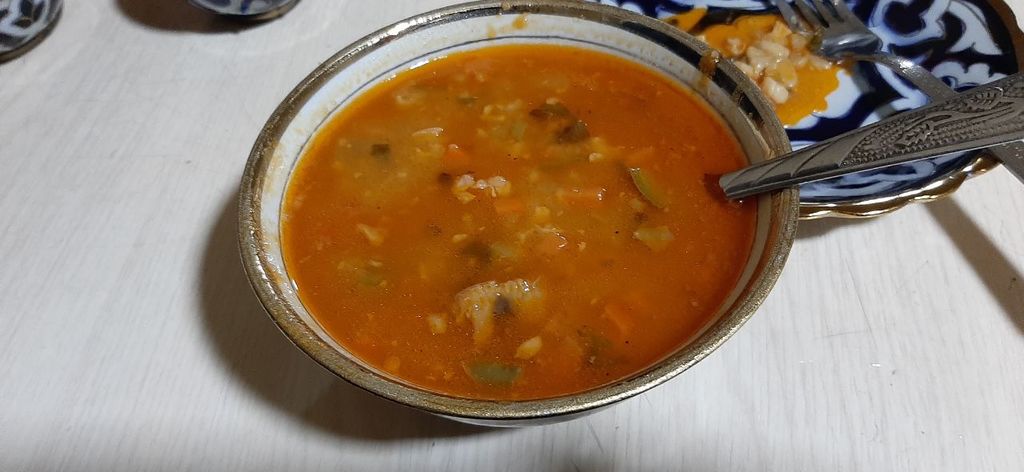 Мне, думаю, что как и остальным посетителям колхозного кафе, понравился плов, я покушал в 3-й раз, по вкусу плов почти как на Дагестанской в Chust Oshi #1, DOS в курсе как там раньше готовили, но лучше, зирвак шикарный, с лёгкой горчинкой от красного горького перца.