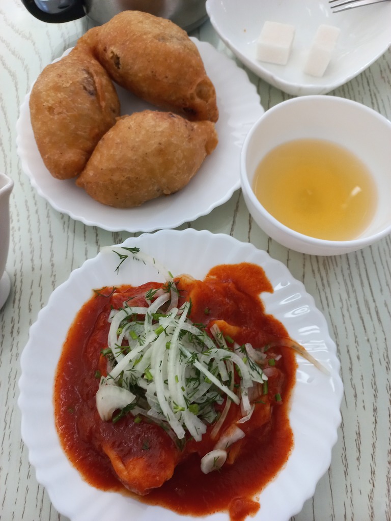 Если дёшево и сытно треба, надо к салатам сразу самсу брать. Одна треуголка и алатская на нос. Сытно, вкусно и бюджетно :D А потом уже немного мяса-рыбы взять:)