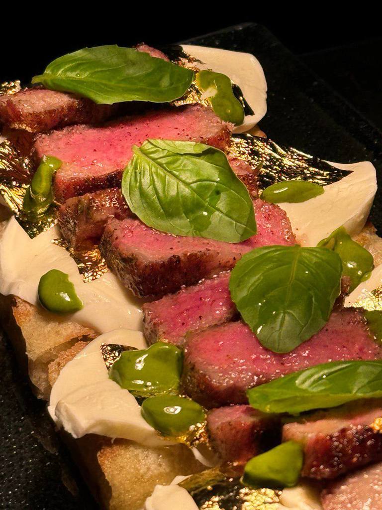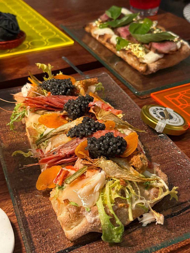 Пиццы: «Вагю с золотом» (37500 р.) и «Ди Маре с крабом, омаром, красными креветками и черной икрой» (37500 р.).