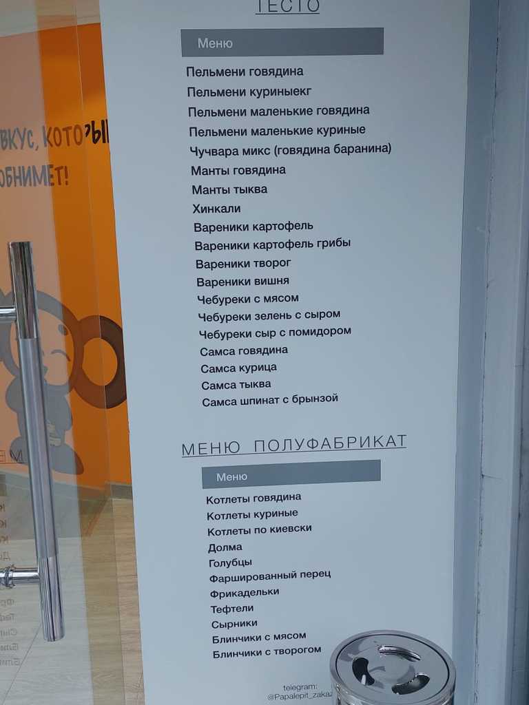 Скорее не меню, а ассортимент, вывешенный на двери. Там готовых блюд нет, только тесто и полуфабрикаты. Точка уже закрывалась, поэтому не было смысла спрашивать цены. Работают до 20:00. Плохо, что сайт не работает :wacko2: Нельзя, чтобы все сразу было хорошо :D