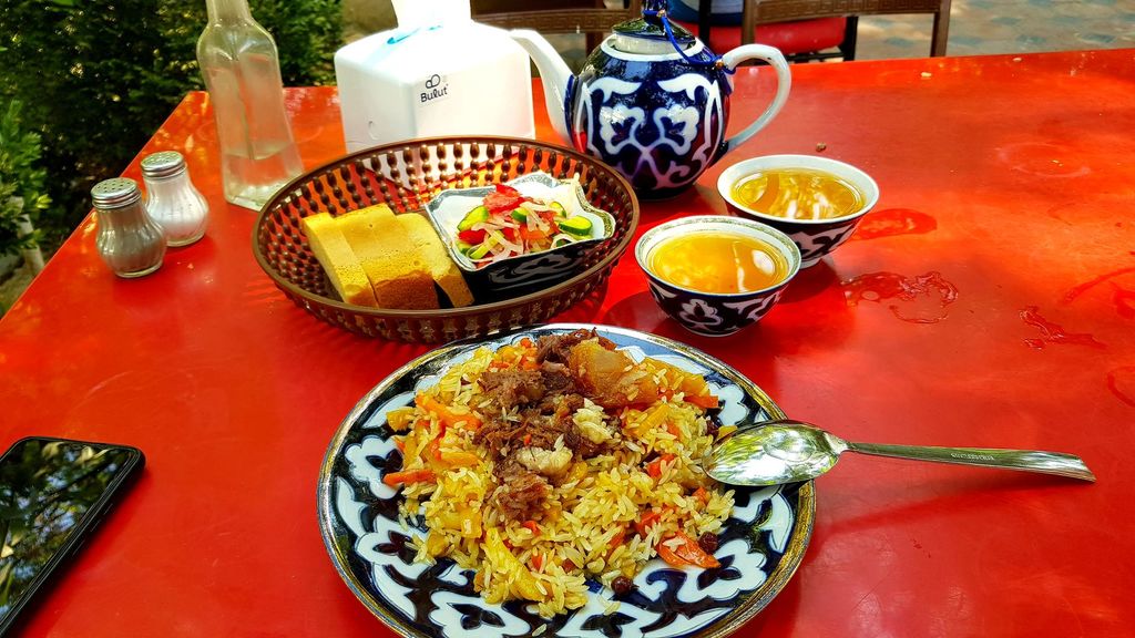 Комплект (плов+салат+чай +хлеб) 25 000 сум, самса 9 000, плов как везде, а вот самса супер. Постоянно домой там берём.
