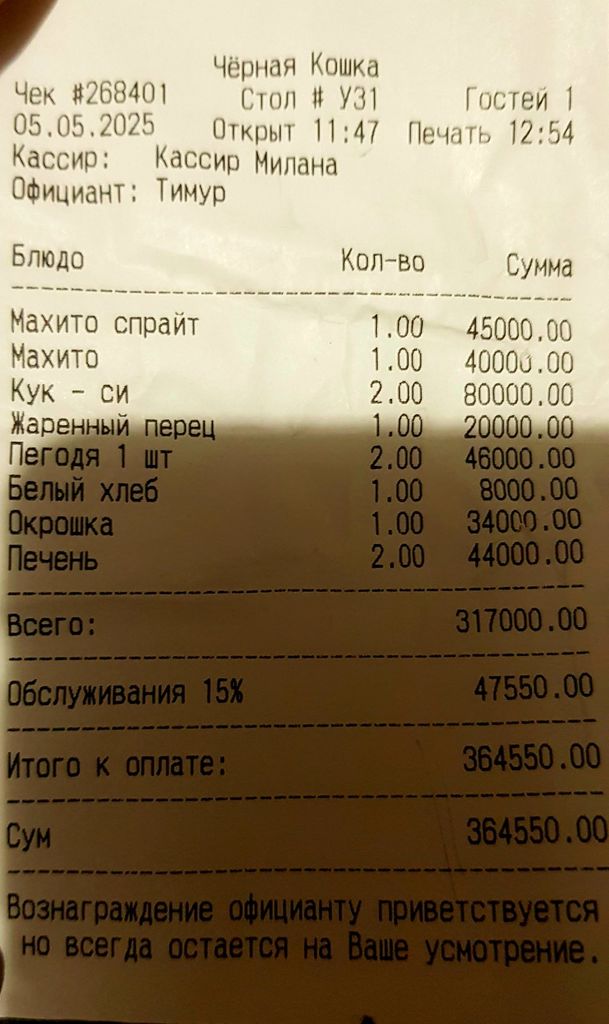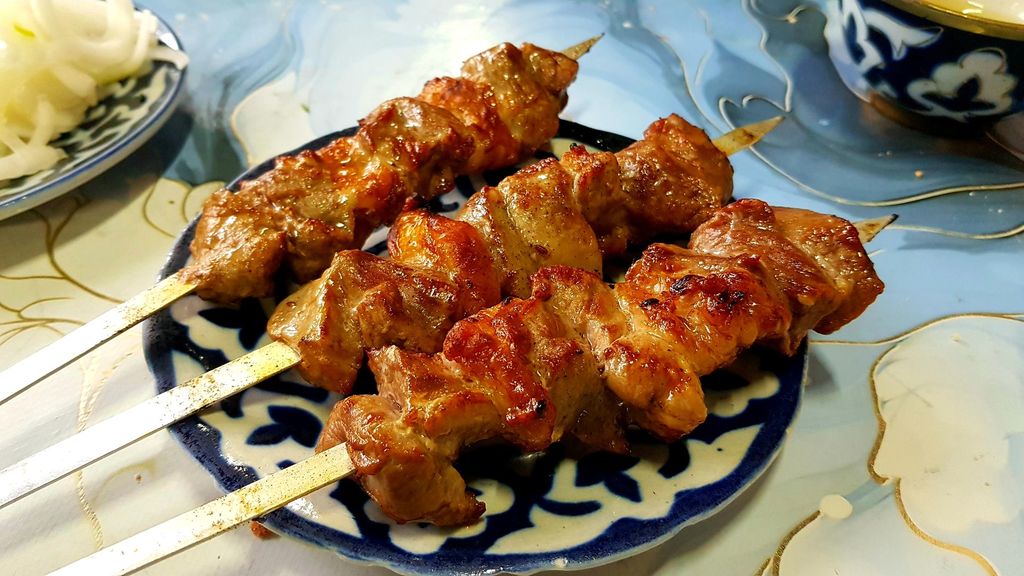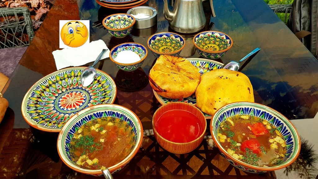 375тыш. Три лагмана, три шашлыка, три самсы, три салата, лепешки, напитки.