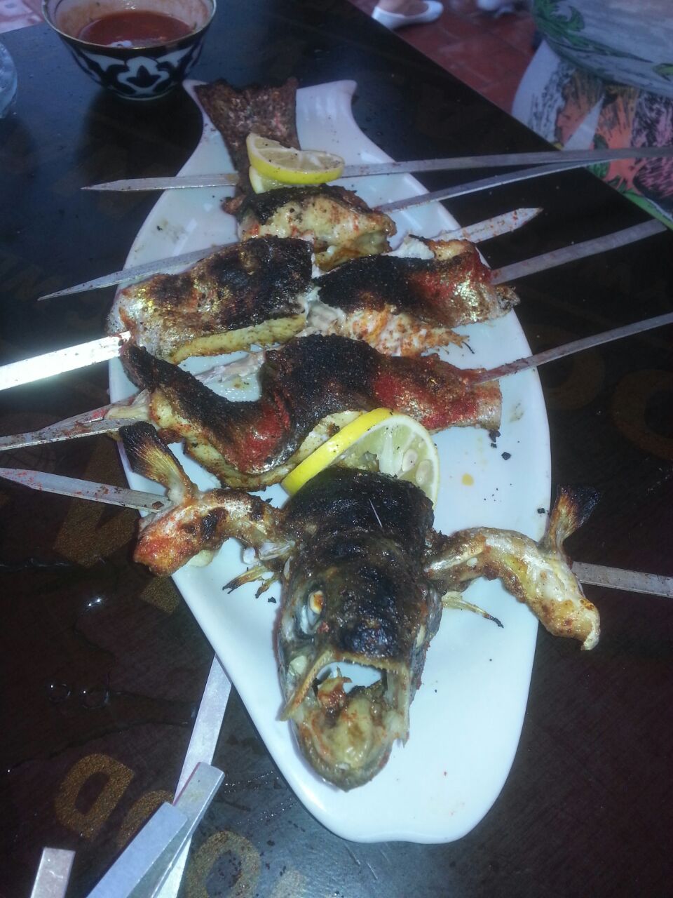 Все зачетно. Шашлыки из молодого барашка, сочные. Форель нежная, хорошо пропеченая. При ливневом антураже в самый раз.