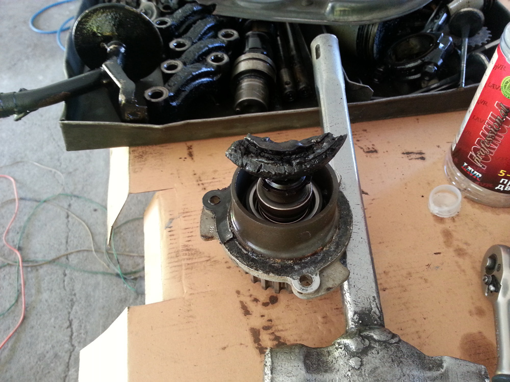 Вот, популярно-дешевый антифриз скушал крыльчатку помпы. Результат - прихват поршня во втором цилиндре и капремонт двигателя.